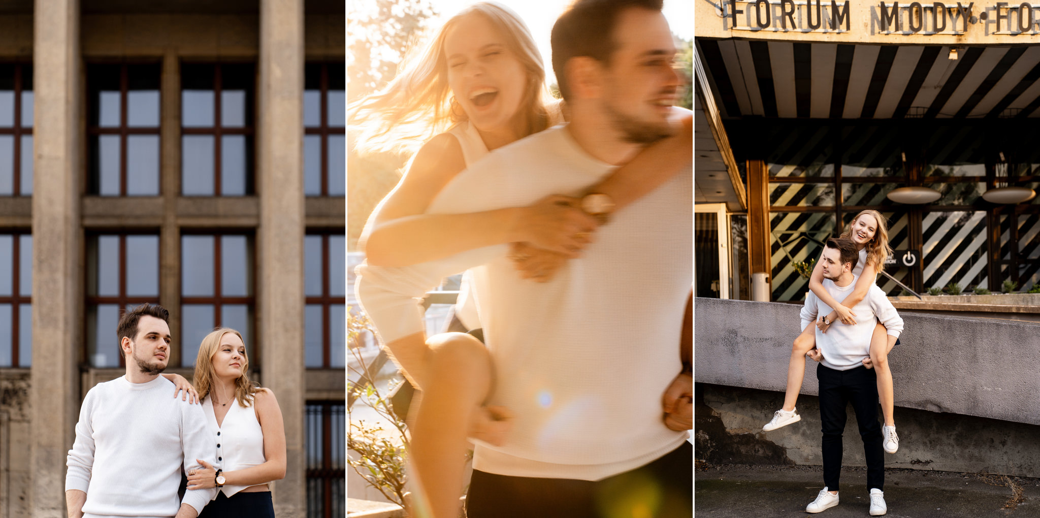 Spróbuj poszukać kolorów na ulicach miasta w okresie zimowym lub wczesną wiosną, kiedy natura jeszcze się nie wybudziła. Możesz zrobić zdjęcia na zewnątrz, a jeśli zmarzniecie to wnętrza Hali Forum na pewno Was rozgrzeją. A gdyby wykorzystać również tamtejsze przestrzenie do kilku zdjęć? Więcej fotografii i wskazówek jak przygotować się do sesji w mieście przeczytasz tutaj – KOLOROWA SESJA W MIEŚCIE.